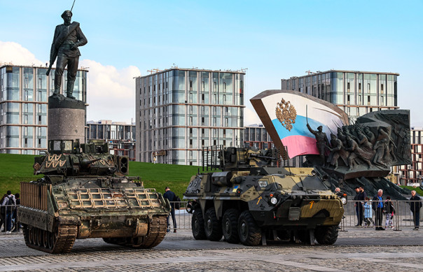 На фото: БМП М2 Bradley и БТР-4 (слева направо), захваченные российскими военнослужащими в ходе СВО, в Парке Победы на Поклонной горе.