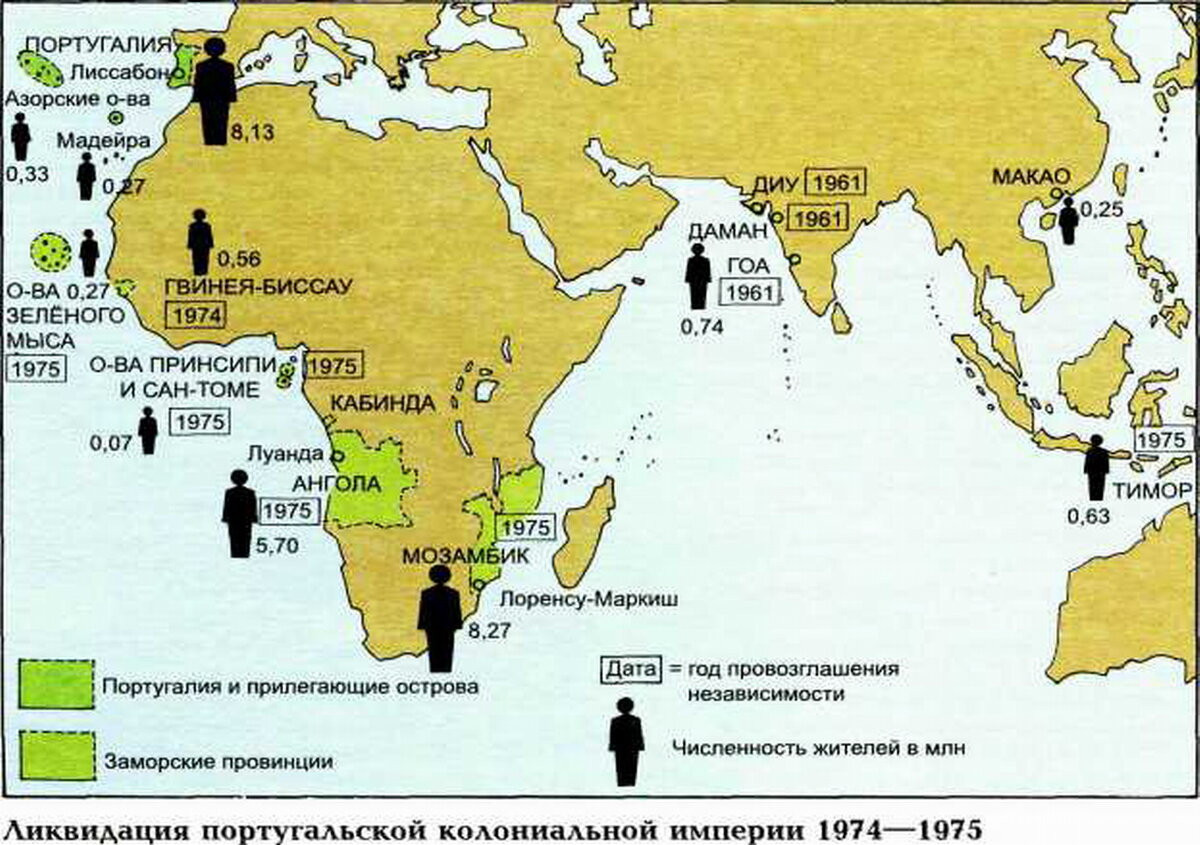 Португалия обладала обширными колониями в Африке и Азии до середины 1970-х годов