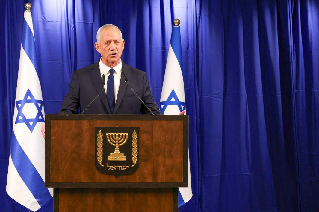 Министр обороны Израиля Бенни Ганц сообщает о выходе из «военного кабинета» на пресс-конференции в Израиле, 9 июня 2024 года