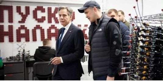Вот, например, госсекретарь США Блинкен, который тоже недавно отметился визитом на якобы киевский военный завод, не стал делать никакого секрета из наличия там украинского персонала.