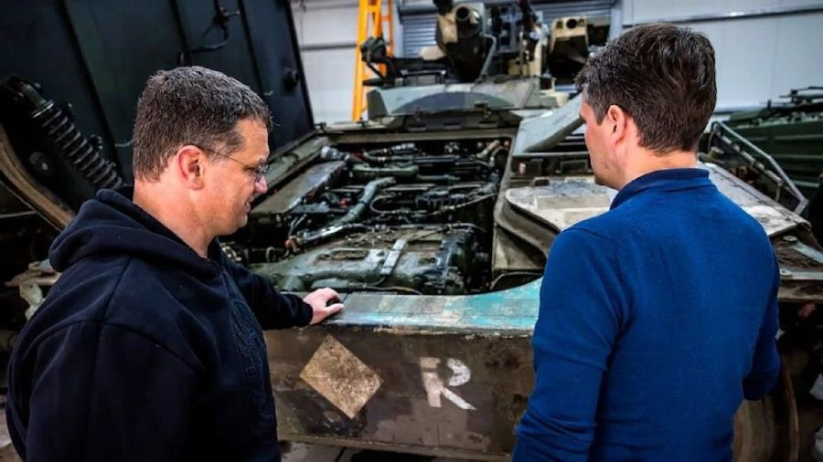 Немецкая оружейная компания Rheinmetall открыла новый завод на западе Украины, где ремонтируются основные боевые танки Leopard 1 и БМП Marder, рассказывают авторы репортажа. «Машины очень хорошо зарекомендовали себя и спасли множество жизней украинских солдат, поскольку броня Marder значительно превосходит броню старых советских моделей», – говорит эксперт Свободной демократической партии (СвДП) по вопросам обороны Маркус Фабер (тот, что на первом фото). Украинцы высоко ценят эти машины за их защиту, говорит Бьорн Бернхард, генеральный директор Rheinmetall Landsysteme GmbH (на третьем фото слева), отмечая далее: «Мы также получаем очень положительные отзывы от солдат по сравнению с другими западными боевыми машинами пехоты». По словам Бернхарда, большинство БМП Marder, приходящих сюда на ремонт, подорвались на минах. Если пострадала только ходовая часть, Marder можно привести в рабочее состояние за три недели, говорит он. Местонахождение завода Rheinmetall держится в секрете, поскольку он является объектом особого интереса для российской армии. «Мы осознаем, что как танковый завод мы всегда являемся стратегической целью для ВВС Путина», – говорит Бернхард. Rheinmetall также хочет в будущем проводить ремонт Leopard 2 и других западных танков на Украине.