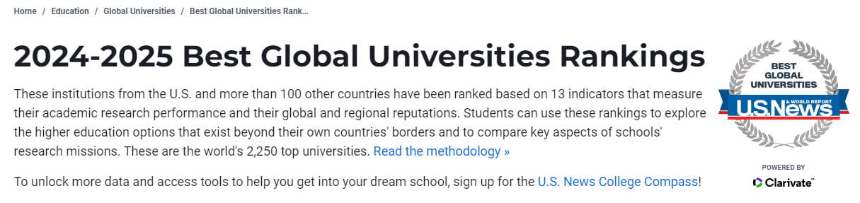Американский журнал U.S. News & World Repor составил рейтинг лучших университетов мира.