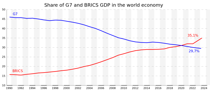 Доля ВВП G7 и БРИКС в мировой экономике