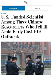 «Незамеченная» сенсация от Wall Street Journal (20.06.2023): по словам официальных лиц США, ученые Уханьского института вирусологии, работавшие над коронавирусом и заболевшие неустановленной болезнью во время первоначальной вспышки Covid-19, финансировались правительством США