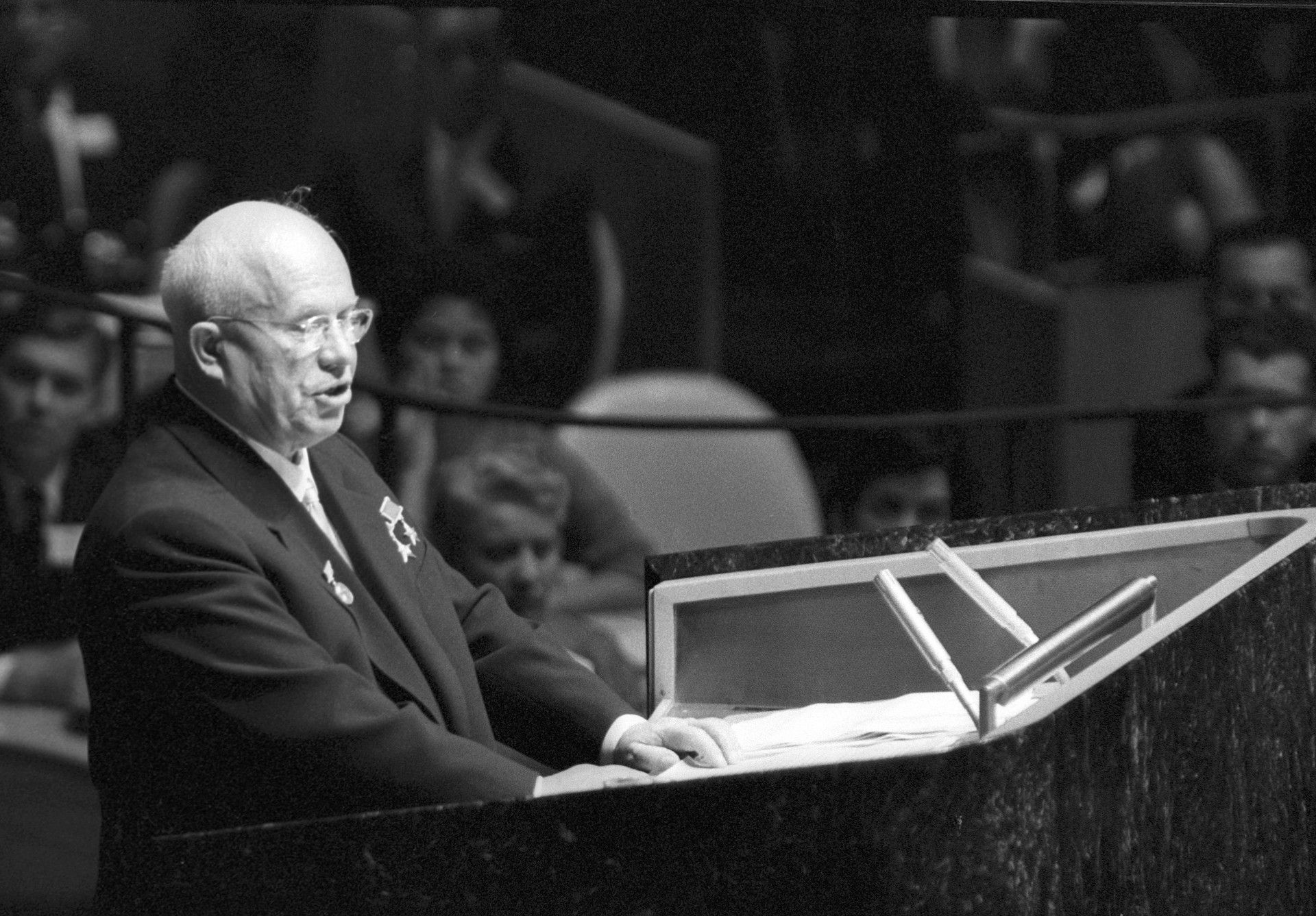 Никита Хрущёв во время заседания Генеральной Ассамблеи ООН