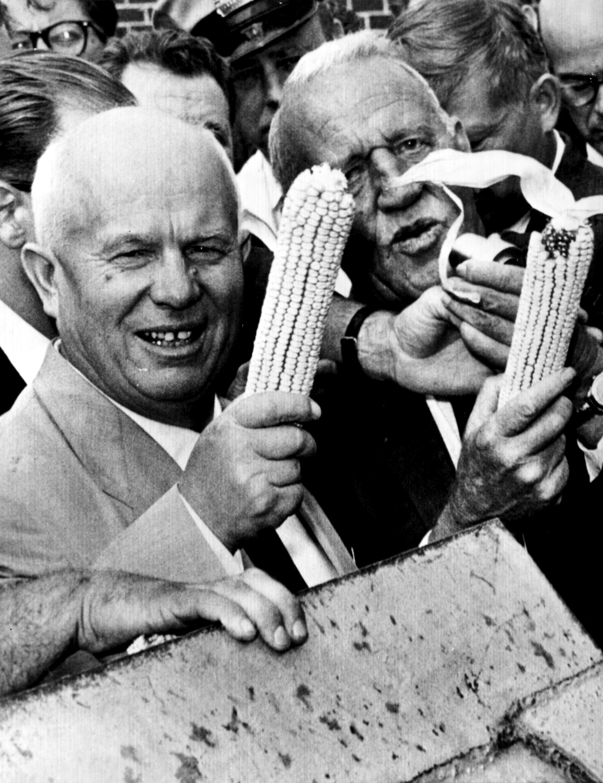 Никита Хрущёв и Рокуэл Гарст на ферме по выращиванию кукурузы