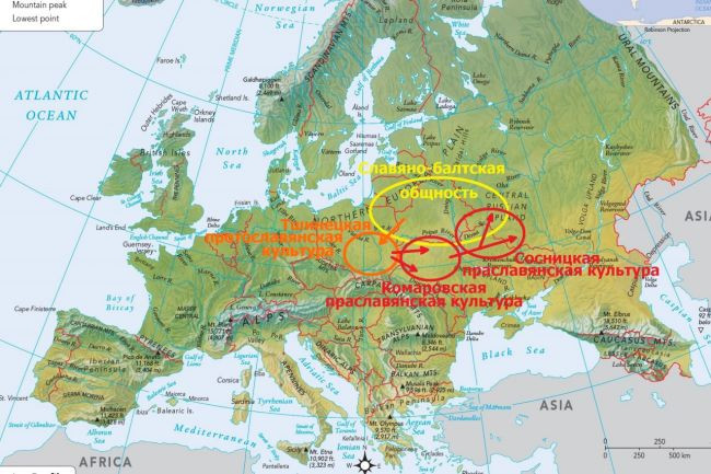 Но где и как произошел раскол? Если угодно, где «рядом» с балтами могли «появиться» славяне? К северу — племена охотников Волосовской культуры, не финно-угров, но ставших одним из их компонентов. Западнее, на Висле процветала Унетицкая культура предков кельтов, италиков и, возможно, иллирийцев. В Прикарпатье и даже на юге Волыни господствовали дако-фракийцы, на юго-востоке и востоке — индо-иранцы. Советский историк и этнограф Вениамин Кобычев с горечью отмечал: «На этнической карте Восточной Европы для них [славян] буквально не осталось места».