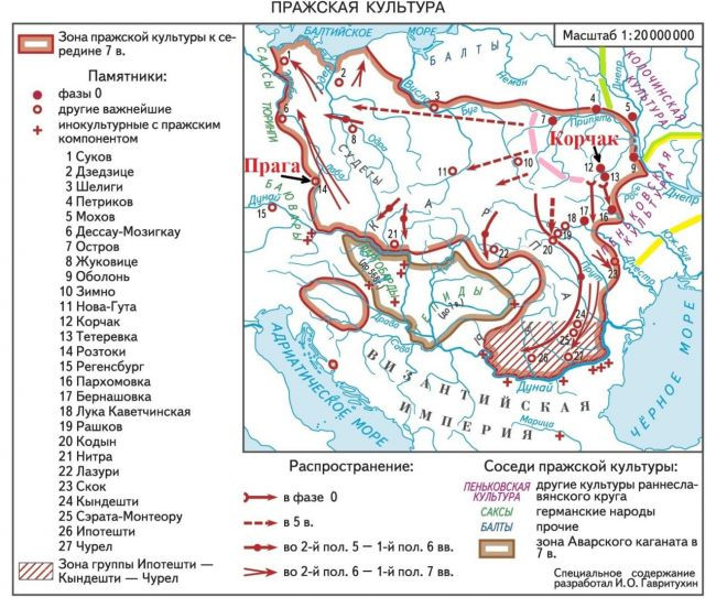 Однако ж, как не уступить пальму первенства братьям по социалистическому лагерю? Вот и закрепилась «научная традиция» в виде «Пражской культуры». Лишь иногда в скобках помечаемой как «Пражско-корчакская». При этом никто не отрицает, что движение славян этой культуры шло с востока на запад: корчакцы шли к Праге, а не наоборот.