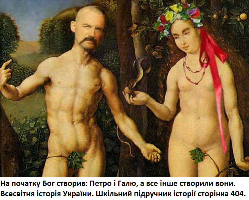 Но всё равно одновременно! Не могли же одни от других отделиться, а те от них — нет! Злые финно-угры из «московских болот» украли имя «Русь», язык и культуру, да так украли, что сами потерпевшие забыли былины о князе Владимире Святославиче «Красно Солнышко» и Илье Муромце, завели собственный эпос о казаке Мамае Мансуре Киятовиче, надели шаровары и, подражая польской шляхте, на захваченных русских землях назвались «украинцами» («пограничниками»; не путать русское «укрАина/украйна» — «пограничье» с польским «УкраИна» в том же значении.).