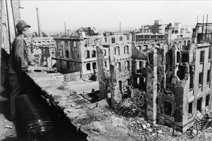 Дрезден был стерт с лица земли. И это не печальная метафора: согласно отчету городской полиции, было разрушено 24 банка, 26 зданий страховых компаний, 31 торговая лавка, 6470 магазинов, 640 складов, 256 торговых залов, 31 гостиница, 26 трактиров, 63 административных здания, 3 театра, 18 кинотеатров, 11 церквей, 60 часовен, 50 культурно-исторических зданий, 19 больниц, 39 школ.
