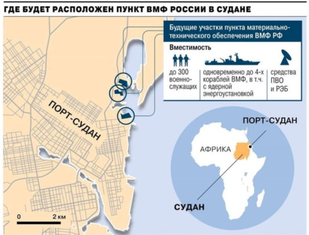 В 2020 году было достигнуто соглашение, согласно которому Россия получила право базировать в Судане до четырёх военных кораблей, включая атомные, сроком на 25 лет. Этот проект предусматривал строительство базы с оборонительной функцией, направленной на поддержание стабильности и мира в регионе.
