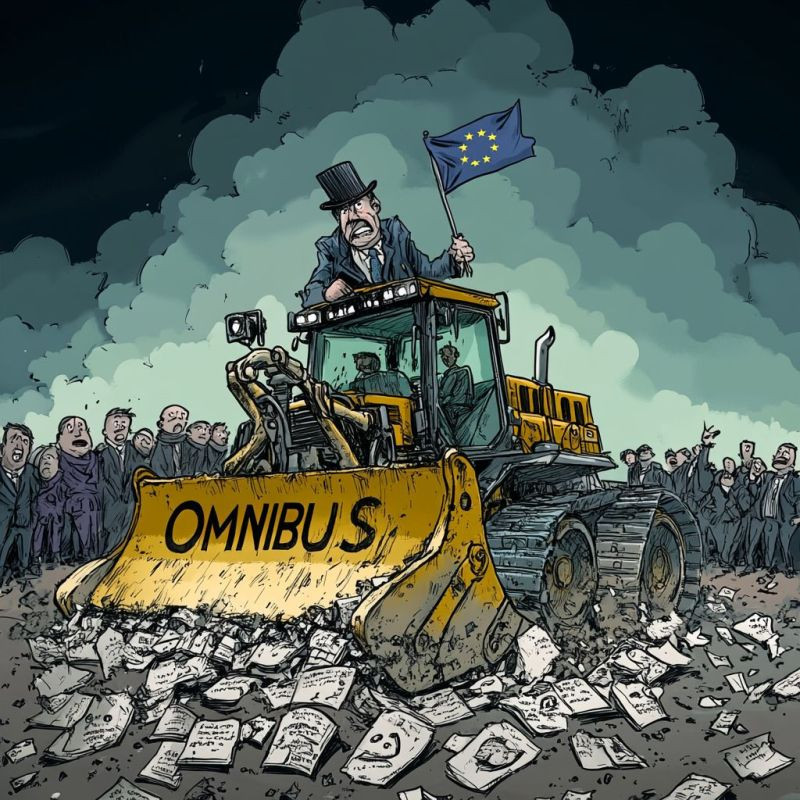 Но вот грянуло 26 февраля, и над Еврокомиссией взвилось знамя борьбы за уменьшение бюрократических расходов и препятствий для улучшения состояния экономики стран Евросоюза. Тот самый «Омнибус»! Инициатива «Всеобъемлющий пакет законодательства по упрощению» должна «обеспечить оптимизацию в нескольких областях и уменьшить количество отчётных требований для малых компаний», иными словами, сократить бюрократическое бремя ЕС, чтобы повысить конкурентоспособность.