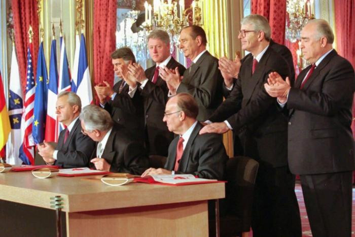 21 ноября 1995 г. на базе военно-воздушных сил США в штате Огайо были парафированы документы, вошедшие в историю как Общее рамочное соглашение о мире в Боснии и Герцеговине (Мирное соглашение, МС). Документ вступил в силу 14 декабря 1995 г. после его подписания в Париже президентами Боснии и Герцеговины (БиГ), Сербии и Хорватии А. Изетбеговичем, С. Милошевичем и Ф. Туджманом. Никого из них уже нет в живых. А президент Республики Сербской Р. Караджич, благодаря усилиям которого до сих пор живет сербская автономия в стремительно исламизирующейся БиГ и которого даже не пригласили на подписание соглашения, отбывает пожизненный срок по решению Гаагского трибунала в тюрьме Паркхерст на британском острове Уайт. Дорогую цену заплатили Радован Караджич, Ратко Младич и ещё десятки сербских патриотов за сохранение осколка исторической родины.