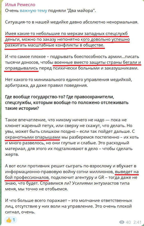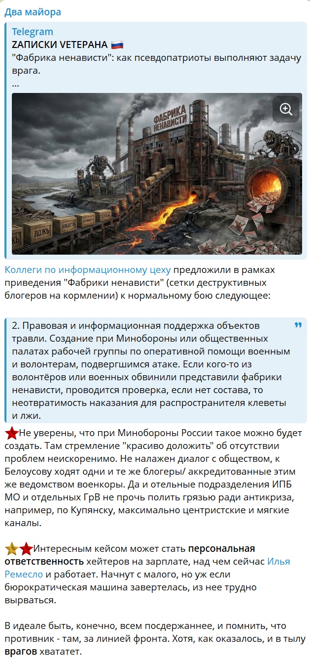 Кстати, Ильюша там выступил с инициативой. Чтобы всех, кто будет информационно атаковать военнослужащих - сажать на длительные сроки.