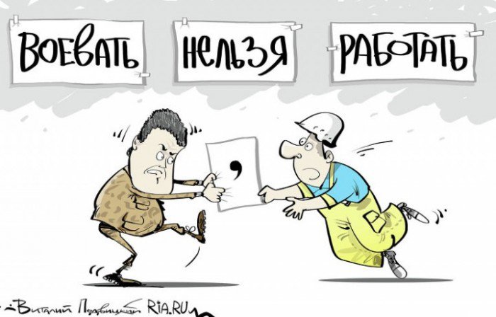 Они сами открыто, своими руками, отрезают себя от источников доходов, сами выгоняют людей на улицу, сами закрывают предприятия, их никто не заставляет это делать. Россия не заставляла никогда закрывать Запорожский автомобильный завод. Россия не заставляла никогда Порошенко и Яценюка подписывать законы, обрывающие все связи с Россией и запрещающие торговлю с Россией продукцией военного и двойного назначения. Это не мы придумали — это они придумали.