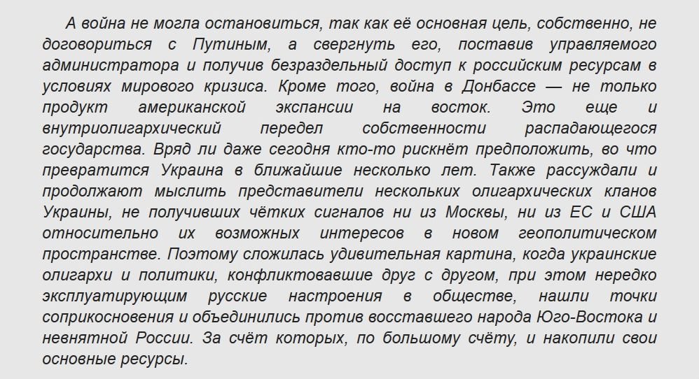 Сейчас прошел тяжелейший кровавый год отречения и от уже "лежащего у ног" русского Донбасса. В пользу кого? В пользу "партнёров", кормящих нацистскую армию и уже примеряющих ошейник для самой России.