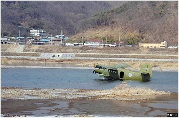 Очередная посадка в лужу. Самолет южнокорейских спецслужб Ан-2 потерпел аварию и совершил вынужденную посадку на реку