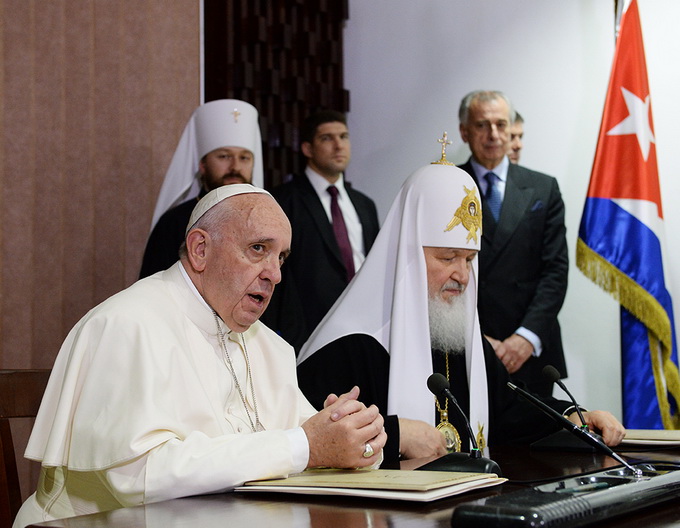 В чём же состоит «пособничество» Папы? Дело в том, что Франциск – первый глава РКЦ не из Европы, а из Латинской Америки. Позиция «латиноамериканского филиала» РКЦ в корне отличается от европейской. Католические священники, открыто симпатизирующие марксистам, в Латинской Америке, уставшей от разгула различных профашистских хунт, уже давно вполне привычное явление. Да и сама встреча глав Церквей на Кубе о чём-то, да говорит.