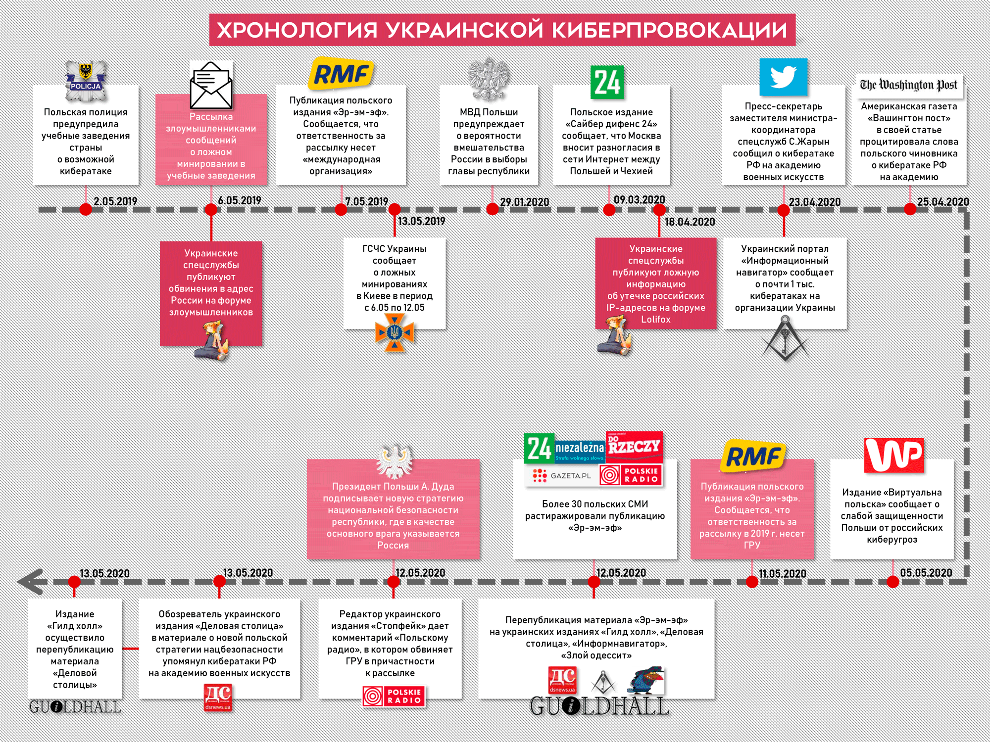 Медийным раскручиванием темы занимались СМИ и порталы, входящие в систему информационно-психологического воздействия Украины. Например, одним из первых сообщения с обвинениями в адрес России опубликовал все тот же Александр «Злой одессит» Коваленко, который работает на 83-й Центр информационно-психологических операций ВСУ. А комментарий «Польскому радио» давал редактор «Стопфейка» Покора, который, конечно, абсолютно точно знал, что за атаками стоит Россия. Симптоматично, что официальные лица, как и в других инцидентах, никак не подтвердили и не прокомментировали обвинения в адрес России. Они прекрасно понимали их голословность.