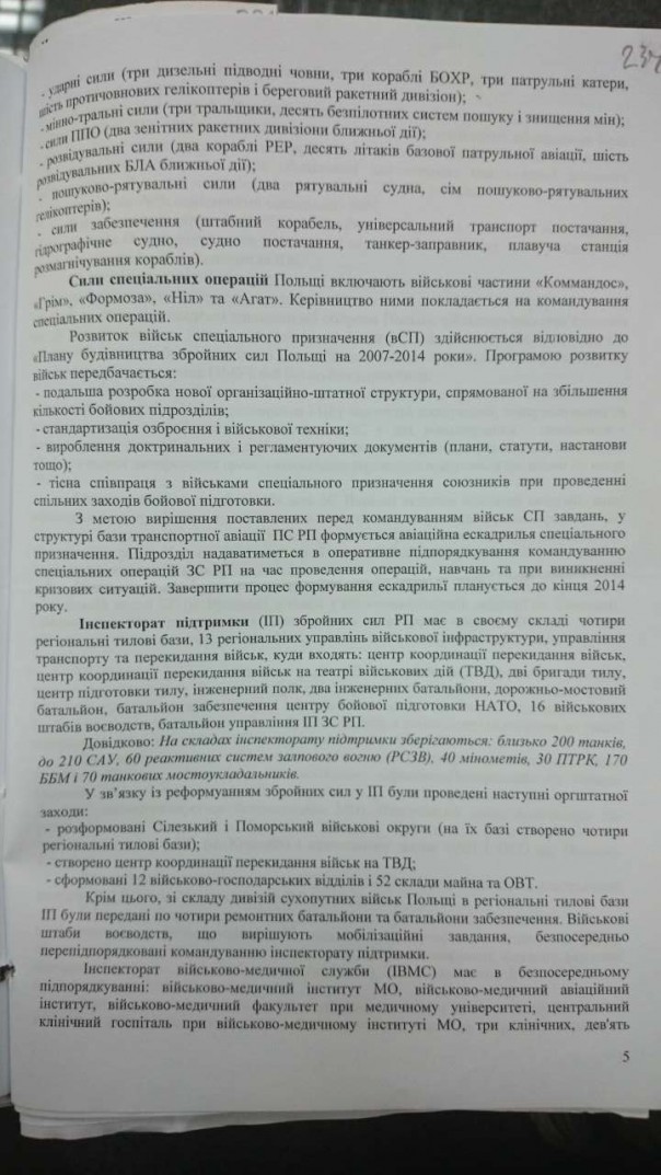 В частности, в рамках этой задачи украинская спецслужба собирала агентурную информацию с использованием «имеющихся оперативных возможностей» о боевом составе, численности и планах по реформированию польских вооруженных сил. Такую разведывательную активность против союзника СБУ маскировала под «противодействие дальнейшим планам и намерениям функционеров неправительственных структур соседней страны…с целью недопущения втягивания представителей польской общественности в деятельность в ущерб национальным интересам» Украины. Хотя, согласитесь, добывание планов реформирования ВС Польши слабо соотносится с противодействием работе неправительственного сектора.