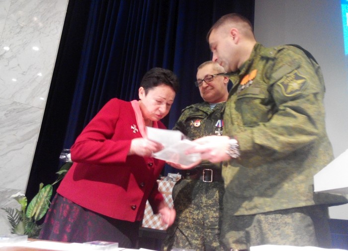 Но Землячество не оказалось «обезглавленным»: присутствующих приветствовали вице-президент организации, член Союза писателей и журналистов России Петр Акаёмов и руководитель волонтерской группы землячества «Москва-Донбасс», член международного Союза журналистов Елена Романенко.