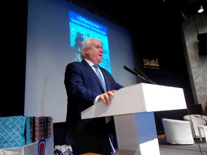 «У нас в зале немало добровольцев. И мы рады приветствовать их в этих добрых стенах! Мы также говорим спасибо всем, кто нашел время придти к нам в гости, чтобы поздравить добровольцев – защитников Отечества. И мы говорим отдельное спасибо всем, кто пришел поддержать добровольцев, пострадавших при защите Отечества»,