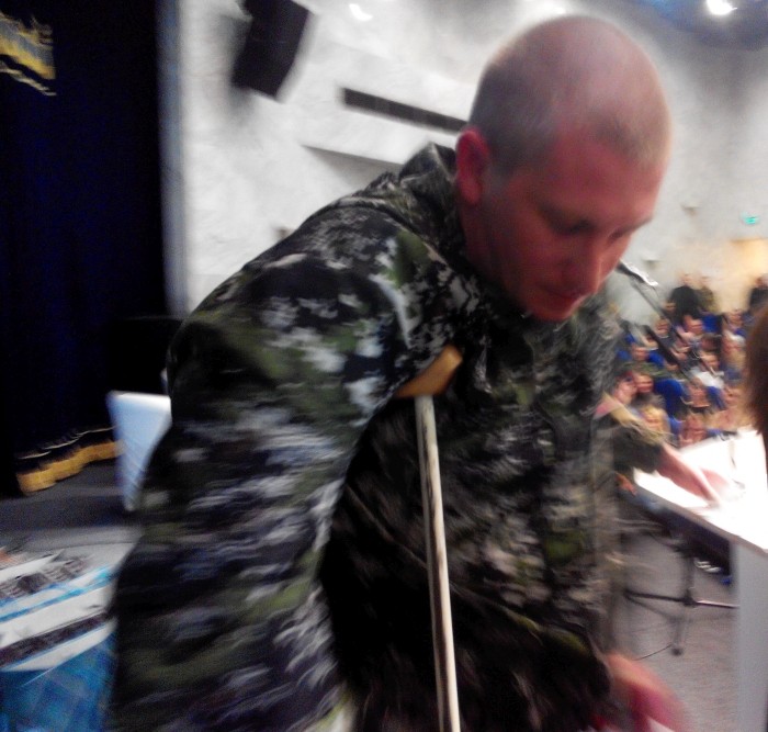 Да. В зале много истинных героев-защитников Отечества. Некоторые из них авансом оплатили будущую Победу своим здоровьем, получив увечья в боях. И сегодня им, этим сильным мужчинам, также нужна помощь.