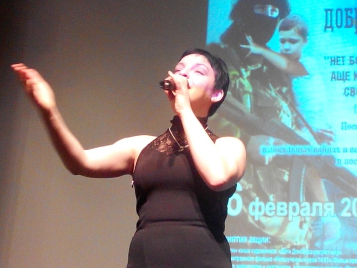 Очень всем понравился и благотворительный концерт. В нем приняли участие известная исполнительница, солистка группы «Архипелаг» Юлия Андреева, солистка Центрального пограничного ансамбля ФСБ России Ольга Варвус, танцевальный ансамбль актеров московских театров из семьи Фурсенко «Дэвлалэ», артист театра и кино Николай Сахаров, солистка группы «Юранна» Анна. Последняя – новичок в благотворительных акциях в поддержку Донбасса. Тем не менее, песни в ее исполнении зал принял с восторгом. Еще бы: львовская группа в Музее Победы в Москве поет неофициальный гимн Донбасса «Спят курганы темные»!
