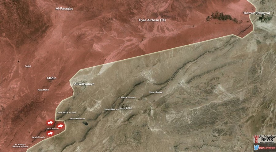 По данным военного корреспондента “Аль-Масдар”, правительственные войска освободили горную вершину Джебель Маскар-ан-Нимр близ важного пустынного города Эль-Карьятейн, сломив в ожесточённом бою сопротивление террористов “Исламского государства”. Ранее, до освобождения этой высоты, противостояние сирийской армии и ИГ у южного её склона носило патовый характер. Однако ситуация изменилась, когда российские ВКС начали более активно наносить авиаудары на этом фронте.