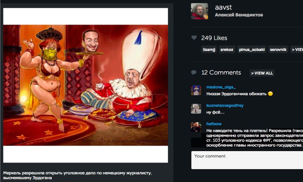 Как известно, президент Турции не переносит критики в свой адрес. Страшно сказать, до чего дошло! Турецкие граждане подвергаются арестам за малейшее выражение недовольства политикой Эрдогана. На этой неделе в Турции могут принять закон, лишающий неприкосновенности некоторых депутатов. Видимо, Эрдоган и их решил засудить за оскорбления.