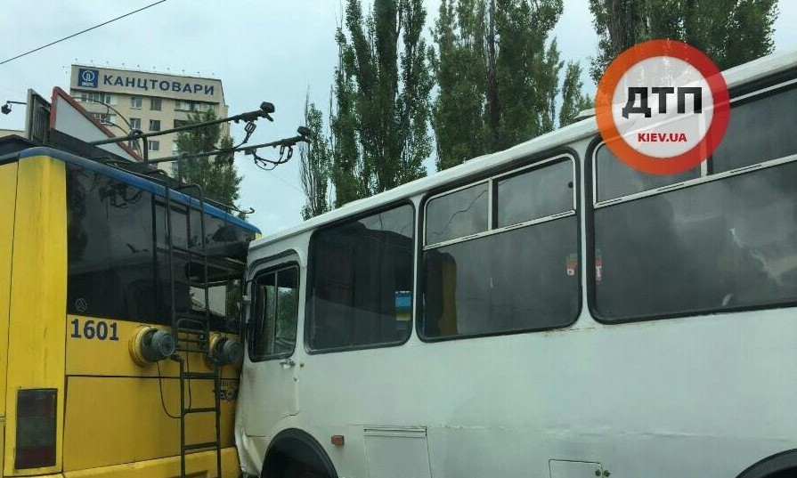 В столице Украины автобус с военными протаранил троллейбус