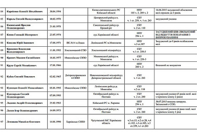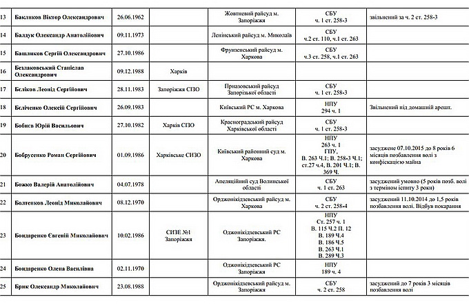 На страничке специально оговорено, что опубликованные данные — лишь малая часть общего количества политзаключённых на Украине.
