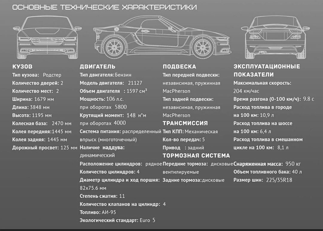 Технические характеристики родстера "Крым".