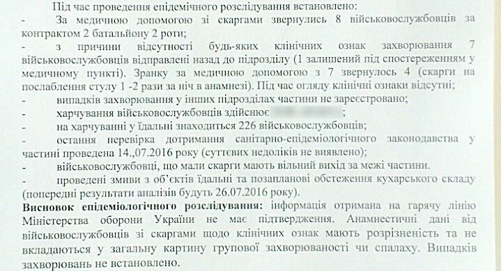 По его словам, на следующее утро бойцы отказались сдавать анализы на бакпосев, без которых невозможно установить диагноз.