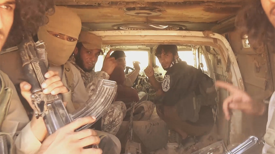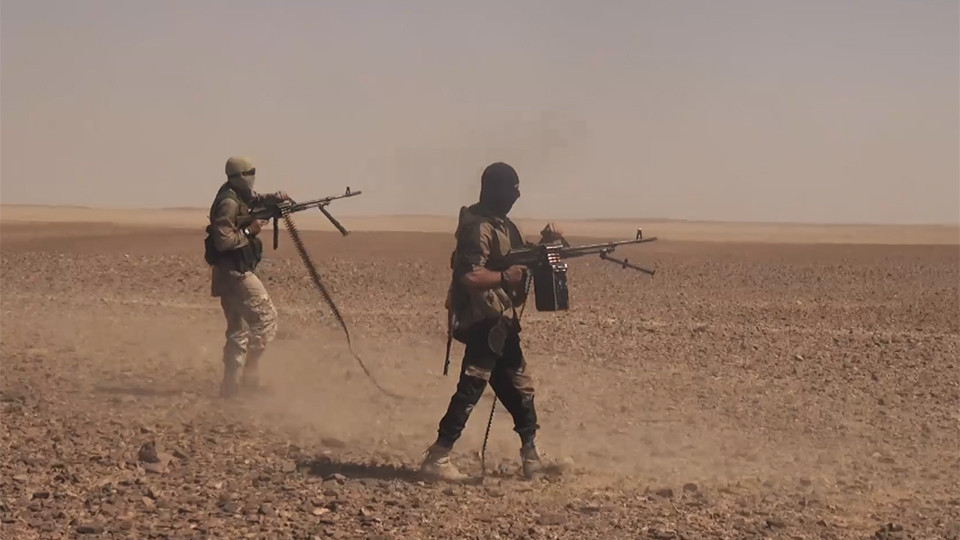 На записи запечатлены террористы, которые маршируют с автоматами в руках. Также на видео появляется военная техника, кадры стрельбы и боевых действий.