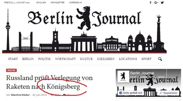 В западной прессе стали проскакивать сообщения, где Калининград именуется «Кёнигсбергом». Например, 30 июня 2016 года в «Берлинском журнале», редакция которого находится, кстати, в США, вышла статья под заголовком «Россия проверяет маршрутизацию ракет в Кёнигсберге».