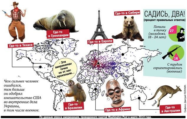 Для украинцев, подобная оплошность американца, подобна «зраде», ведь большинство жителей США, даже не знают, где находится «незалежная». Как показывают данные социологических исследований, только один из шести американцев, смог правильно указать правильное местоположение Украины на карте, при этом, социологи узнавали у людей, какие действия следует предпринимать США на Украине. В результате, чем больше ошибались с местоположением американцы, тем больше они одобряли вмешательство США во внутренние дела Украины, включая и военное.