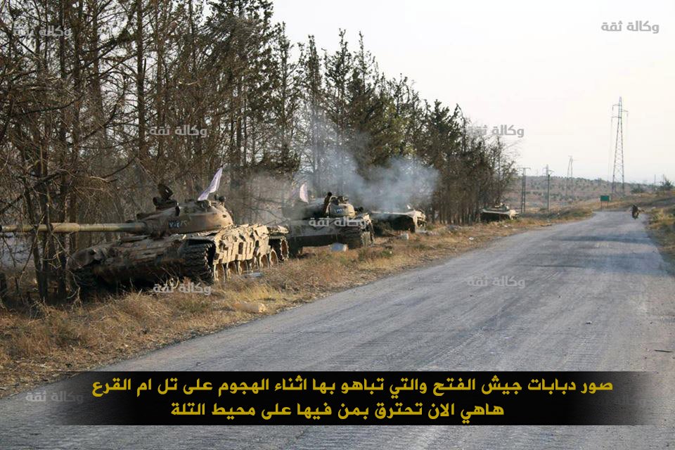 К югу ситуация не столь благостна для САА. Мощные атаки САА и "Харакат аль-Нуджба" на позиции "Ан-Нусры" и "Фаллах-аль-Шам" успеха не принесли и противник смог сохранить контроль над этими ключевыми позициями, за счет которых удерживается фронт к юго-западу от коридора в Рамусехе. Стороны заявляют о десятках убитых (с нашей стороны это в основной иракцы) в боях за эти пункты в последние 3 дня.