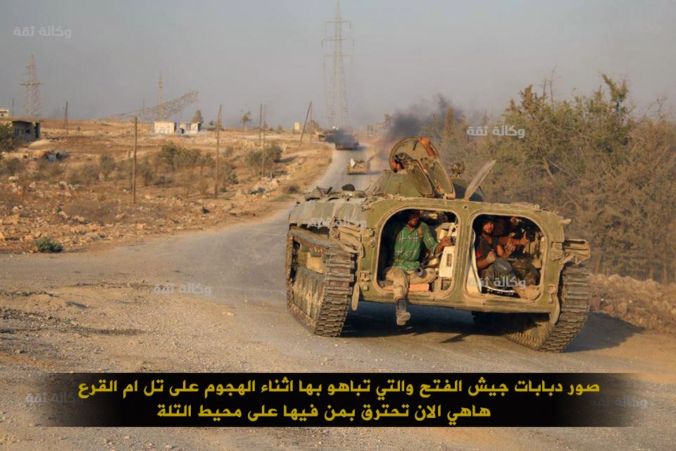 После того, как армия 2 дня назад полностью взяла северный карьер и прилегающий к нему холь Аль-Санобрат, был установлен прямой огневой контроль над дорогой Хан-Туман - Рамусех. Так как это тактическое поражение осложнило снабжение боевиков в Рамусеха, последние пару дней боевики "Ан-Нусры" несколько раз ходили в атаку на этот холм, но откатились с серьезными потерями (до 50 убитых, несколько танков, БМП и тачанок). Как уже упоминалось ранее, удары с юго-востока выглядят более перспективынми для САА, так как тут меньше жилой и индустриальной застройке и поэтому армии проще реализовать свое преимущество в бронетехнике и артиллерии.