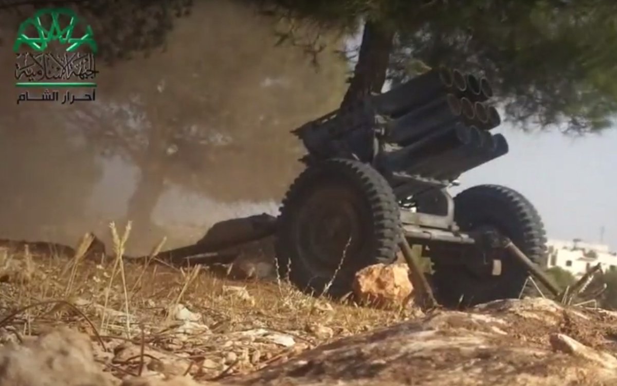 Обстрел позиций САА к югу от Алеппо из РСЗО.
