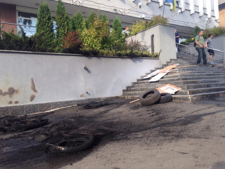 Выяснилось, что группа лиц, примерно 20 человек, пришли к зданию, установили туристические палатки и принесли шины. Впоследствии шины подожгли, и бросили в здание, по предварительной информации, “коктейль Молотова”.