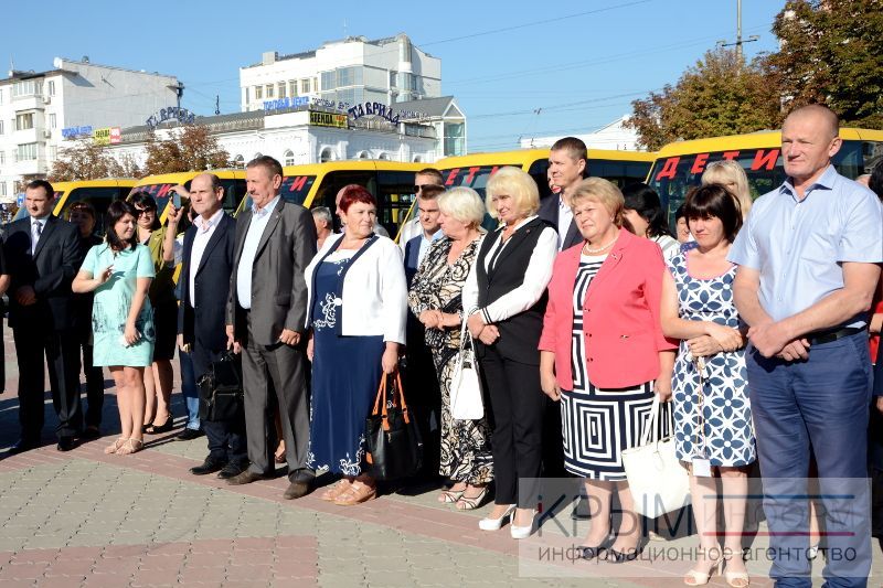 Глава Крыма Сергей Аксёнов и министр образования республики Наталья Гончарова передали ключи от 107 школьных автобусов представителям городских и районных администраций. Как передает корреспондент Крыминформа, торжественная церемония прошла сегодня утром на центральной площади Симферополя.