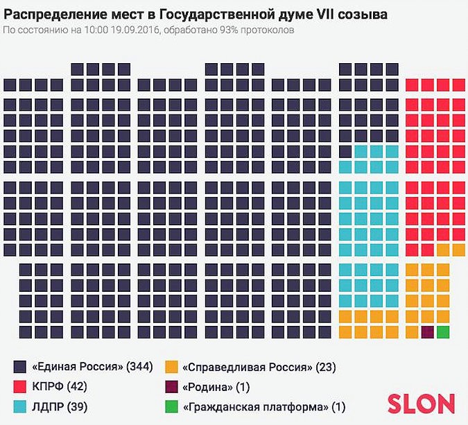 Первое место. Подведены итоги выборов депутатов Государственной Думы РФ 7-го созыва. Безусловная победа партии «Единая Россия» и сокрушительное поражение остальных парламентских партий, уступивших партии власти практически все одномандатные округа. У единороссов 343 мандата. Для сравнения на выборах в Государственную Думу 6-го созыва в 2011 году «Единая Россия» взяла всего 238 мандатов. Говоря простым языком, представителям остальных трех парламентских фракций в Думе-то и делать нечего. Вот уж по истине их голоса ни на что не влияют. А может это и к лучшему? Страна вступила в крайне непростой период своей истории, и нам как никогда нужно единство всех здравых сил и стабильность политической системы. В чем абсурд, спросите Вы? Ах да, чуть не забыл. Вам не кажется удивительным то, что выборы с рекордно низкой явкой обеспечили партии власти максимальное, можно сказать рекордное, количество мандатов? Я раньше грешным делом думал, что низкая политическая активность населения это большой минус. А сейчас вижу, что это, оказывается, большой плюс. Для определенной категории граждан…
