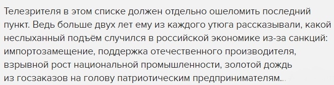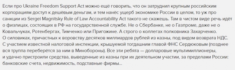 Автору гораздо интереснее обсудить удобные пункты, касающиеся ущерба от санкций и отмене закона Магнитского.