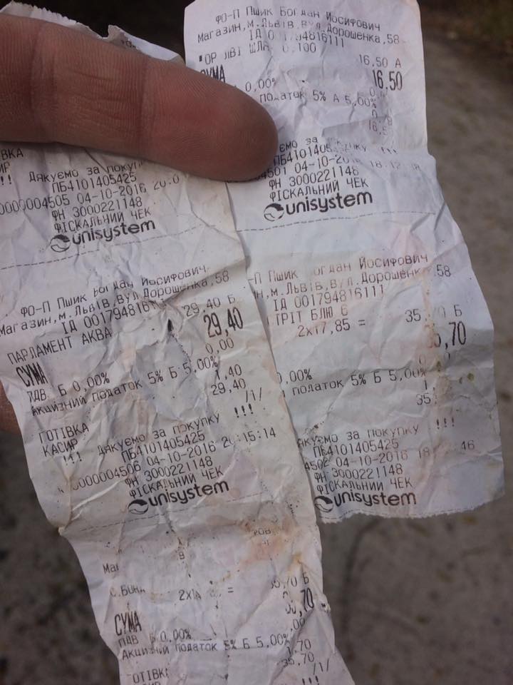 "Среди мусора есть чеки из Львова (магазин). Откуда они там взялись? Также упаковка из McDonald's тоже намекает на город Львов, потому что не похоже, чтобы в Гаевом, Озере, Киверцах или Луцке можно было поесть в таком фаст-фуде. По причине его отсутствия" - написал он.