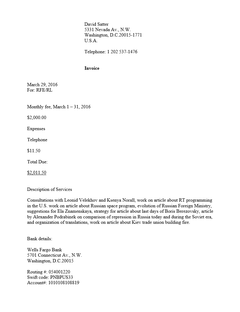 Стоит отметить, что платежные документы с подробным описанием оказанных услуг г-н Сэттер направляет в NED. В одном из них наш консультант даже не преминул отметить, что потратил аж 11 долларов и 50 центов на телефонные разговоры.