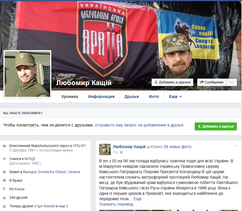 А это страничка в фейсбуке настоятеля церкви военного капелана Любомира Кащиго.
