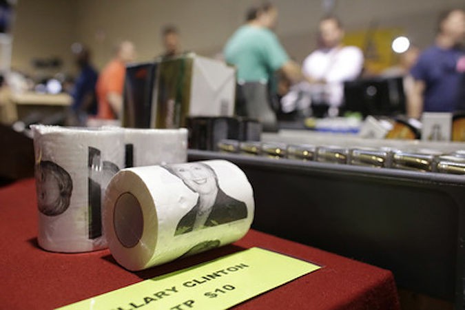 Третье место. Туалетная бумага с Клинтон обошла по популярности рулоны с Трампом. Выпускают подобные «агитки» в Китае, но продают в большей мере на территории США. Предвыборная хандра рождает спрос, а спрос, как водится, рождает предложение. Показательно, что в начале ленты рулоны с Трампом продавались гораздо лучше. Этой физиономии на бумаге отдавало предпочтение в шесть раз больше американцев. Однако к финалу Хиллари и здесь обогнала Трампа. Теперь большинство американцев предпочитают «пачкать» именно ее физиономию. Сомнительный индикатор уровня поддержки электората, не правда ли? Вот теперь и думай, хорошо это или плохо. Для Клинтон.