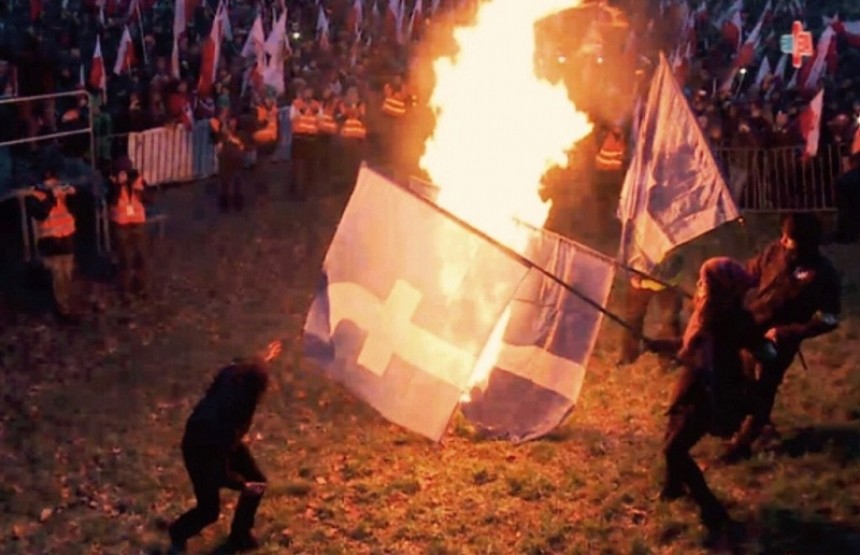В Варшаве во время митинга, организованного националистами в честь Дня независимости Польши, был сожжен флаг Украины, передает польское издание Gazeta.