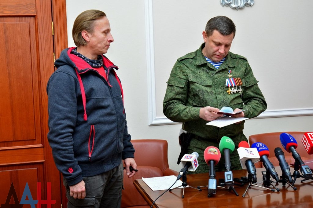 «У нас радостное событие», — сказал Глава ДНР в ходе торжественной церемонии. Он зачитал присутствующим заявление актера на предоставление ему гражданства ДНР. После этого под аплодисменты вручил Охлобыстину паспорт. «Слава Донецкой Народной Республике, Слава Русскому миру», — сказал в свою очередь россиянин.